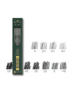 lieferbar als 2mm Mine in den Härtegraden 4H, 3H, 2H, H, HB, B, 2B und 3B sowie als 3,15 mm Mine für TK-Stifte 139404 / 139405 / 139406 in den Härtegraden 4B, 5B und 6B